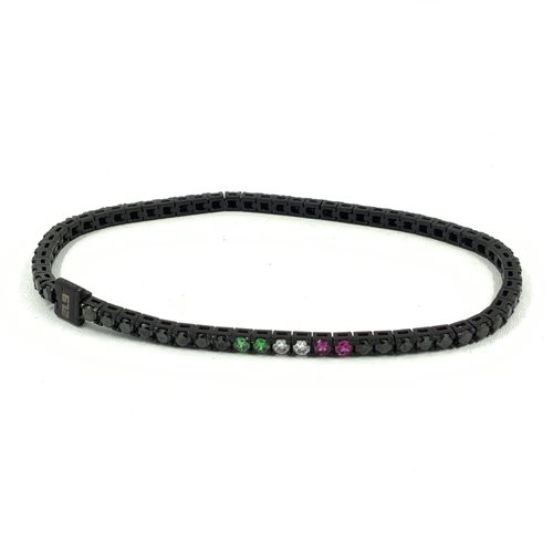 BRACCIALE TENNIS 21.9 IN NANOCERAMICA NERA CON ZIRCONI NERI E CON BANDIERA ITALIANA, LUNGHEZZA 19.5 CM