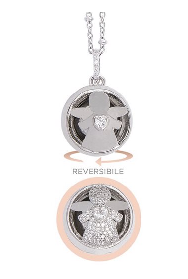 Ciondolo chiama angeli angelo in ottone e zirconi con soundball rodiata e catena regolabile in acciaio