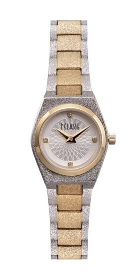 Orologio Solo tempo da Donna,la Cassa è in Acciaio da 23 mm di colore Silver-gold con Vetro Minerale, il Quadrante è Silver con Indici a Zirconi, la resistenza all'acqua è di 3 atm. Il Cinturino è in Acciaio di Colore Silver-Gold