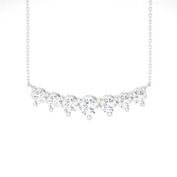 Questo girocollo realizzato in oro bianco riciclato 18 KT incastona 1 diamante AMA LAB GROWN taglio brillante da 0.50 ct, 2 diamanti AMA LAB GROWN taglio brillante da 0.30 ct, 2 diamanti AMA LAB GROWN taglio brillante da 0.20 ct e 2 diamanti AMA LAB GROWN taglio brillante da 0.10 ct per un totale di 1.70 ct. I diamanti coltivati in laboratorio sono fisicamente identici ai diamanti estratti dalle miniere. Condividono un processo di crescita identico a quello dei diamanti naturali formandosi come atomi di carbonio che ad alta temperatura e pressione si legano insieme per formare una struttura reticolare cristallina. Una volta completamente formati, vengono tagliati dalle stesse sapienti mani che si occupano di tagliare i diamanti estratti dalle miniere al fine di garantirne la brillantezza. Condividono colori e purezze pari ai naturali e vengono certificati dagli stessi enti (IGI, GIA) che sono tra i più accreditati a livello mondiale per la certificazione del diamante. Poiché non hanno i costi umani e ambientali associati ai diamanti estratti, i diamanti da laboratorio offrono il miglior valore per chiunque sia interessato ai diamanti.