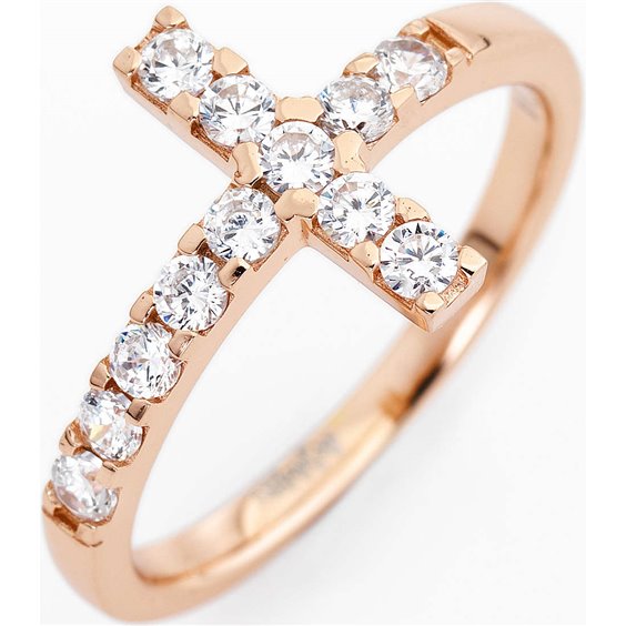 Gioiello Amen Da Donna, Anello Croce Rosa E Zirconi Bianchi,