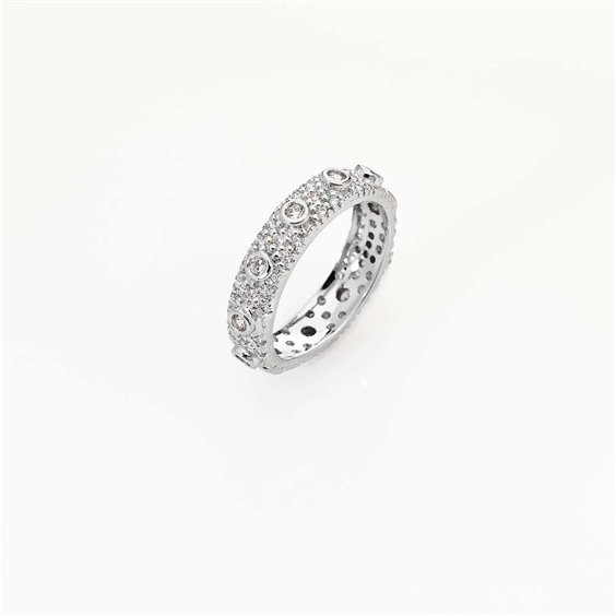 Gioiello Amen, Anello Rosario Con Rodio E Zirconi Bianchi, La Misura Dell'Anello È La 16. Gioiello Amen In Argento 925.