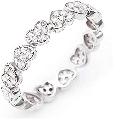 Anello fedina in Argento 925/°°° con cuori tempestati di zirconi
