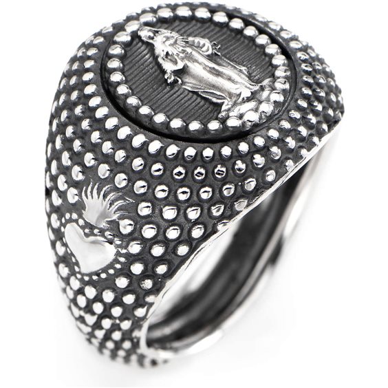 Anello Di Amen Da Donna Della Collezione Ave Maria. Anello In Argento 925 Della Misura 24. Il Colore È Brunito.