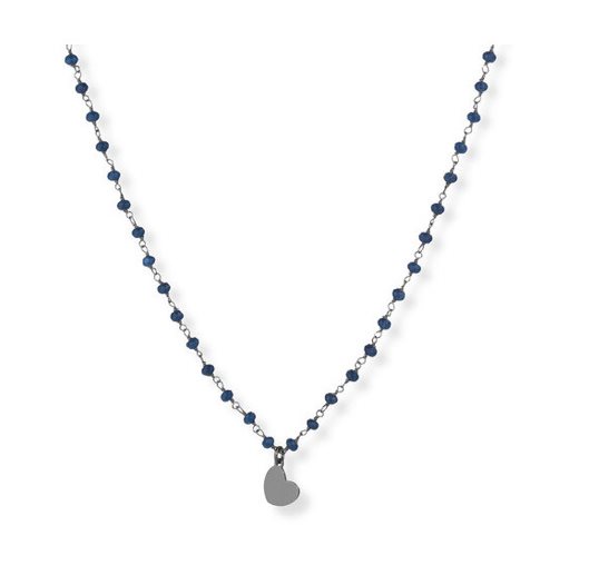 Collana in argento 925 brunito con pietra AGATA BLU e charm cuore , lunga 70 cm .