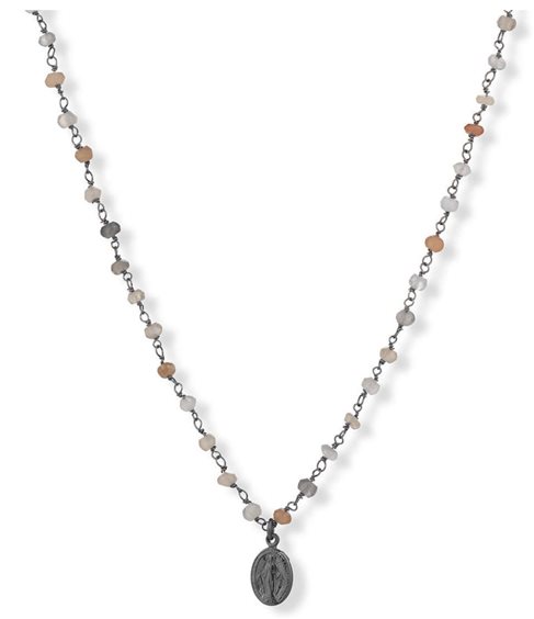 Collana Da Donna Di Amen Della Collezione Romance. Collana Miracolosa In Argento 925 Con Pietra Di Luna Multicolor. Gioiello Della Lunghezza Di 70 Cm. Collana Di Colore Brunito.