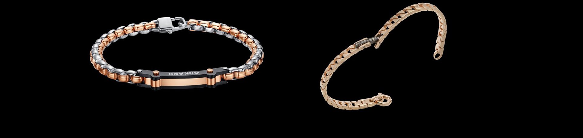 Verve e personalità caratterizzano i gioielli per uomo Arkano: l’eleganza raffinata si unisce alla ricerca estetica più innovativa, la tradizionale preziosità dell’oro e dei diamanti si rinnova attraverso l’accostamento a materiali alternativi, sia tecnologici che naturali Arkano si pone l’obiettivo di rimarcare le qualità delle proprie origini in chiave moderna, scegliendo l'utilizzo dell'acciaio 316L, impreziosito dai trattamenti di colore e dall'uso di pietre preziose.