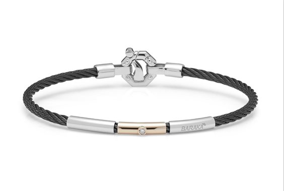BRACCIALE. ORO ROSè 750. ACCIAIO. PVD NERO.DIAMANTI BIANCHI P.ct 4