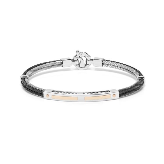Bracciale in stainless steel PVD nero, Oro rosa 750‰. Chiusura ottagonale con Diamante bianco P.Ct. 2. Lunghezza 19 cm.