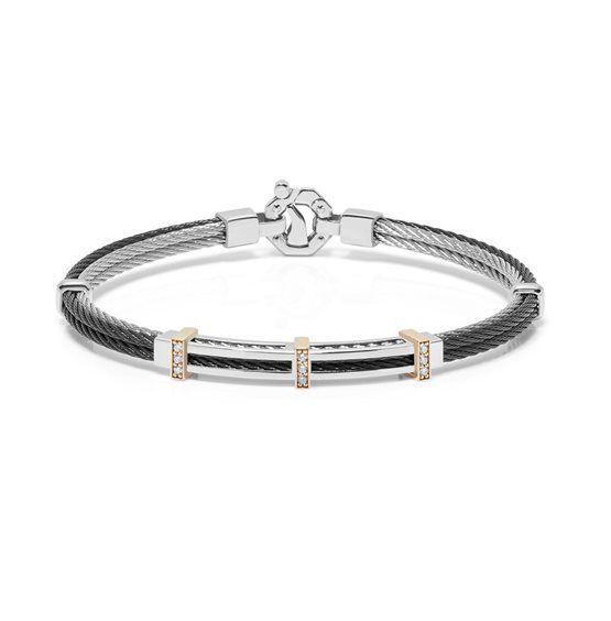 Bracciale in acciaio, PVD nero, oro rosè e diamanti bianchi( ct 0,16).