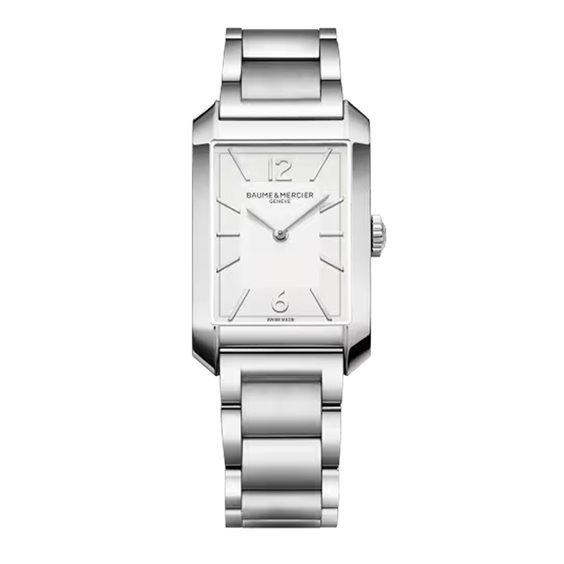 Questo segnatempo al quarzo fonde stile urbano ed eccellenza orologiera. Ha un quadrante bianco opalino e una minuteria grigia. L’elegante cassa rettangolare in acciaio inossidabile è abbinata a un bracciale integrato intercambiabile a 3 file in acciaio inossidabile con finitura lucido-satinata.