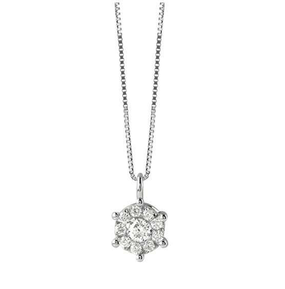 Collino con pendente in oro bianco 18kt e diamanti Ct.0,07, colore GH. Misura 45.