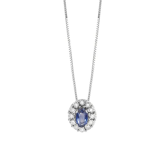 COLLIERINO zaffiro con contorno 12 diamanti naturali