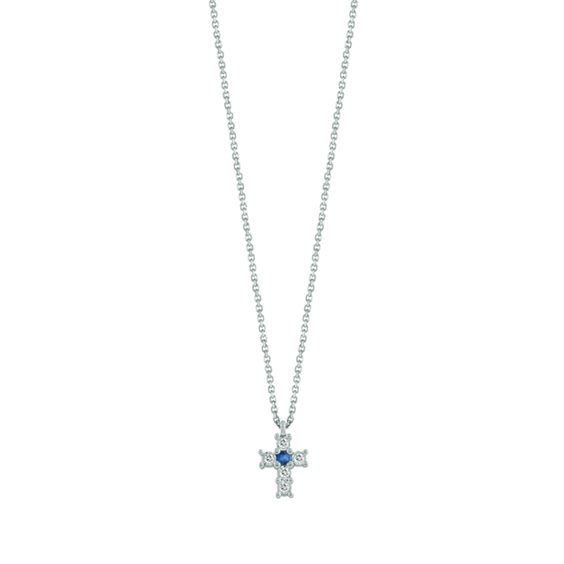 Collierino in oro bianco 18kt con zaffiro CT 0.03 e 5 dm CT 0.03 colore GH