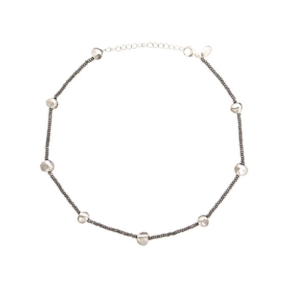 La collana B Rock è un girocollo in ematite con piccoli elementi tondeggianti in acciaio lucido. Un accessorio delicato, ma dagli accostamenti forti e dall'anima rock.