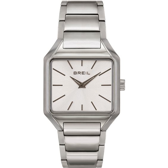 Orologio solo tempo con cassa in acciaio 33x32 mm. Il vetro è minerale e il quadrante argentato con un effetto raggi di sole. Bracciale in acciaio con sezione centrale satinata e chiusura con bottoni di sicurezza. Movimento al quarzo Miyota 2025. La resistenza all'acqua è di 5 Atm.
