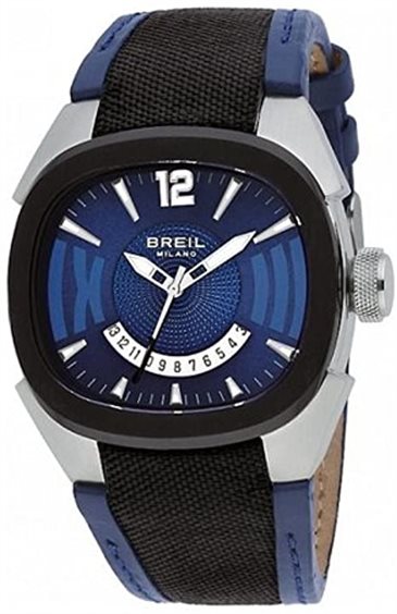 Orologio uomo in pelle blu con tessuto idrorepellente, w. resistant 10 atm