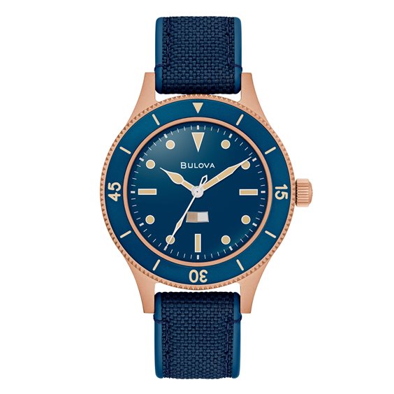 Orologio Bulova Uomo Mil-Ship 150th Ann. Questo orologio subacqueo MIL-SHIPS in edizione speciale si basa su un prototipo sviluppato in collaborazione con la Marina degli Stati Uniti nel 1957. L'orologio celebra il 150° anniversario di Bulova. L'orologio ha una cassa in CuSn8-Bronze sabbiato, il colore di un casco da immersione del XIX secolo. Un materiale molto resistente che svilupperà una patina naturale nel tempo. Il quadrante blu intenso si abbina alla lunetta bidirezionale in alluminio per un look di ispirazione vintage. Il quadrante è dotato di indici luminosi, di un indicatore di umidità bicolore e di un vetro zaffiro con protezione antiriflesso a 5 strati. Il bracciale è realizzato con uno speciale stampaggio in gomma e nylon cordura® per garantire durata e comfort. Il fondello reca un'incisione che celebra il 150° anniversario di Bulova.