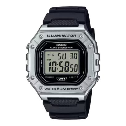 Funzionalità pratiche e display audace si incontrano in un design digitale sportivo. Il modello W-218H è dotato di una batteria di 7 anni, con un'impermeabilità di 5 bar e la luce LED ti consente di sapere sempre che ora è, anche al buio.