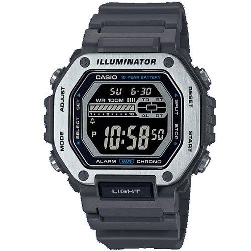 Oltre a una resistenza all'acqua fino a 10 bar e una batteria che dura 10 anni, questi orologi digitali presentano una lunetta in metallo dal design angolare e accattivante. Il quadrante oversize, facile da leggere e da usare è incorniciato dal look audace e solido dell'acciaio inossidabile. Il pulsante anteriore nella posizione dell'indicazione delle 6 consente di accedere facilmente alla luce LED. È inoltre dotato di altre funzioni pratiche, come cronometro, timer per conto alla rovescia, sveglia e doppio fuso orario.