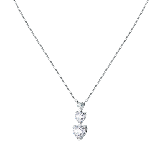 Collana Diamond Heart Silver Catena e Pendente Zirconi Bianchi 38+4cm