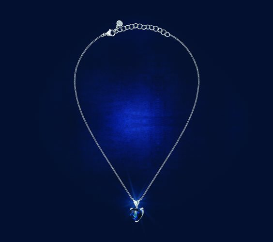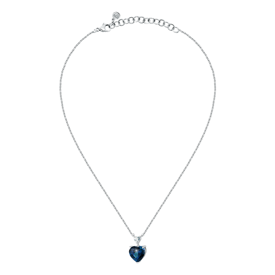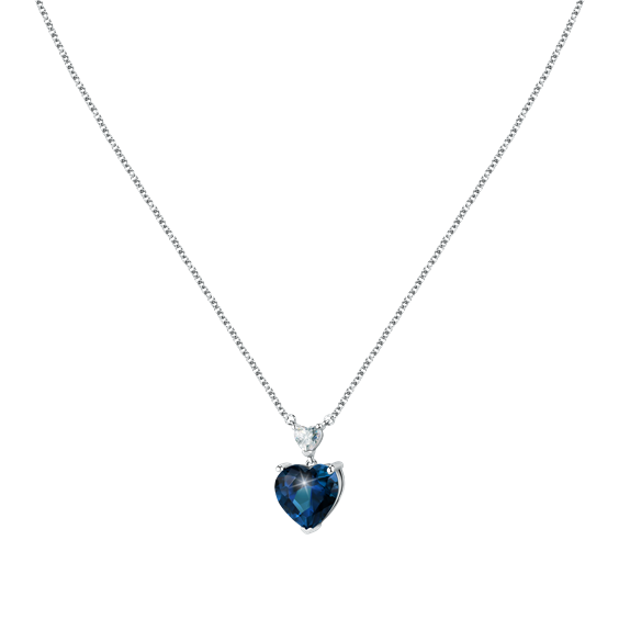 Collana Diamond Heart Silver Catena e Pendente Zirconi Bianchi e Blu 38+4cm