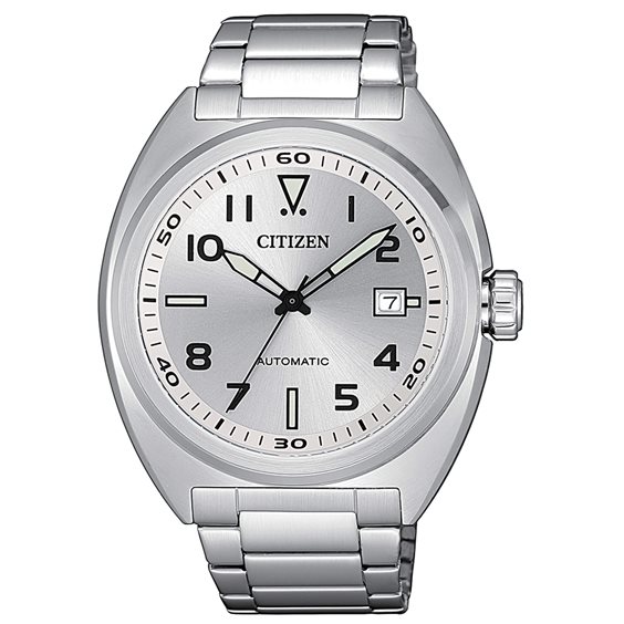 Orologio Citizen Collezione Urban Automatic ref. NJ0100-89A. Orologio Meccanico a ricarica automatica. Cassa in acciaio lucido e spazzolato - fondo serrato a vite - diametro 42 mm.- spessore 12 mm.- ansa 22 mm. Movimento meccanico automatico ( Miyota 8210 ) con datario ore 3. Vetro minerale. Quadrante colore argento - lancette e cifre-index luminor. Bracciale regolabile in acciaio lucido e spazzolato - chiusura déployante con pulsanti .Impermeabile 10 bar (100 metri) Peso 160 grammi. Scatola Originale. Garanzia 2 anni.