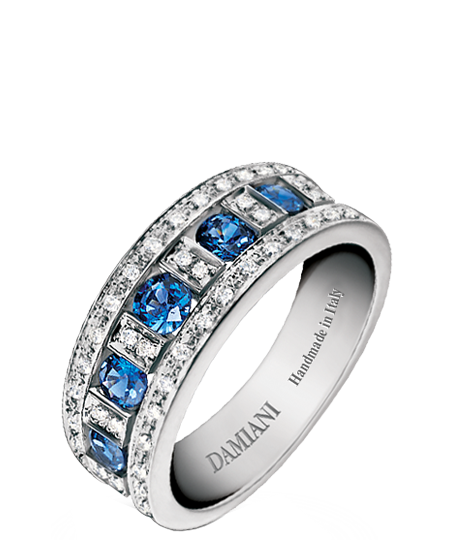 Anello della collezione Belle epoque in oro bianco con zaffiri di caratura 0,85 e diamanti a taglio rotondo di caratura 0,18 di colore GH.