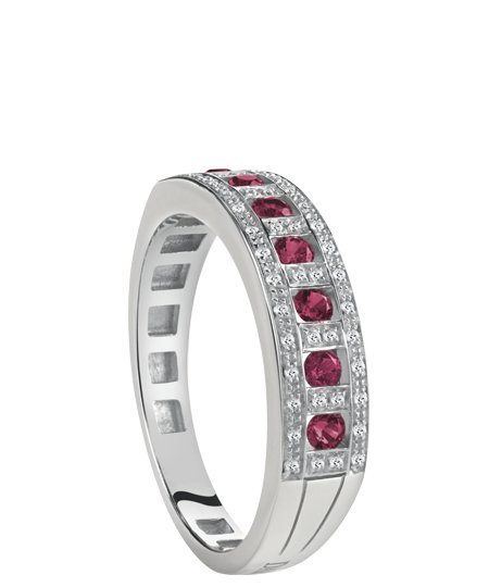 Anello in oro bianco con rubini (0.3ct) e diamanti (0.14ct colore GH).