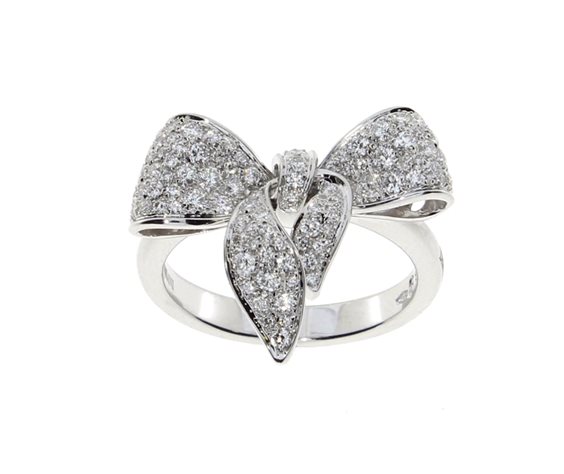 Anello della collezione Fiocco in oro bianco mis.13 e diamanti a taglio rotondo di caratura 0,85 di colore GH.