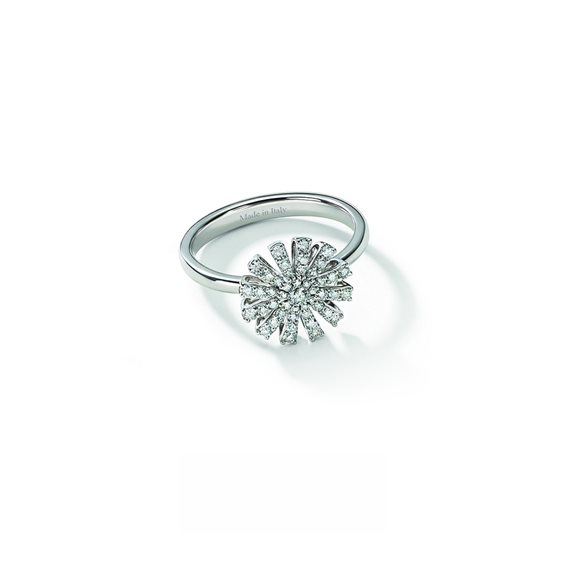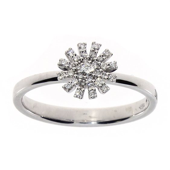Anello della collezione Margherita in oro bianco con diamanti con caratura 0,16 colore GH.