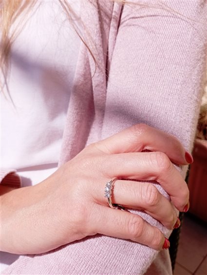 Anello Trilogy in oro bianco e diamanti della collezione Scelgo Te.