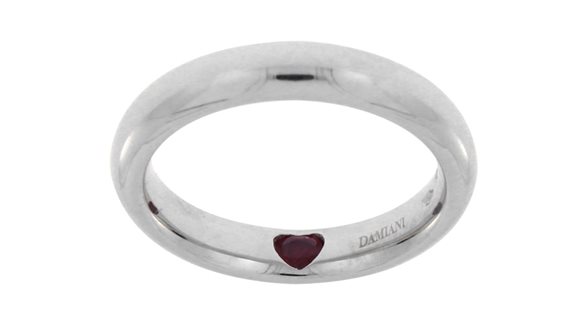 Fede nuziale in oro bianco con rubino taglio a cuore.
