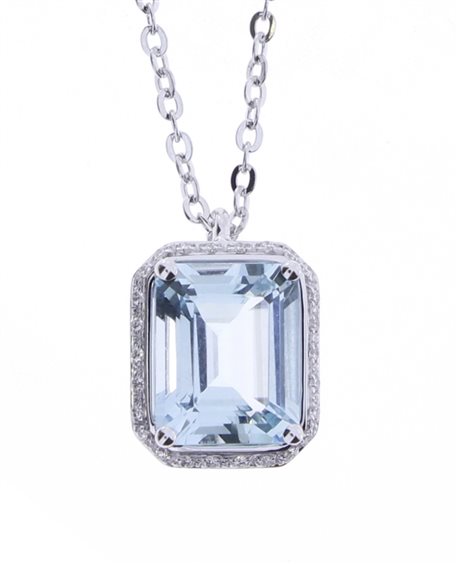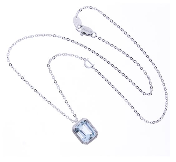 Collierino con diamanti ed acquamarina taglio smeraldo. Diamanti caratura totale 0,107 colore GH