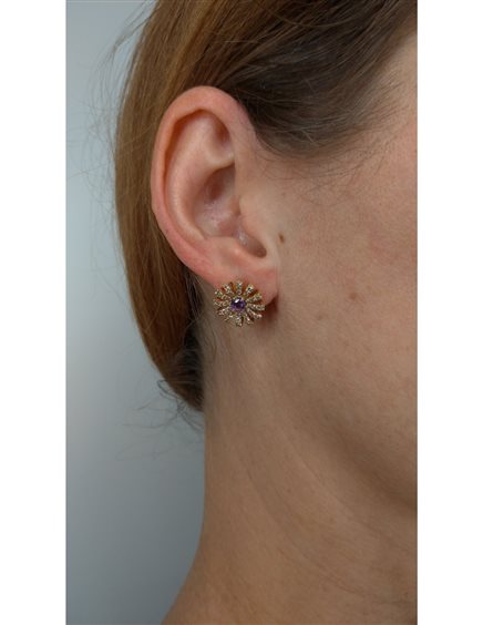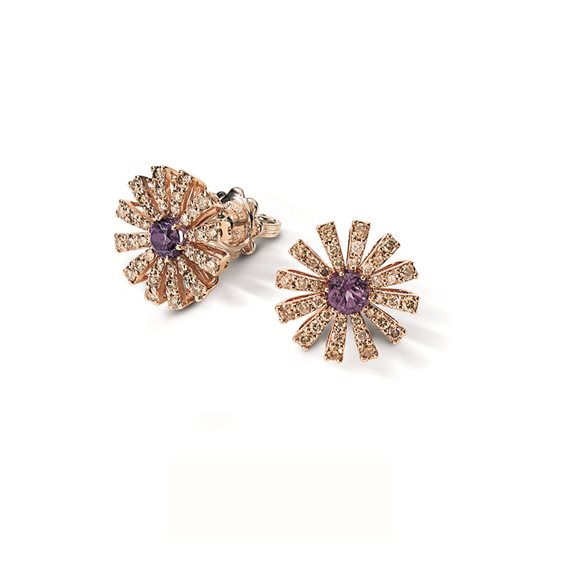 Orecchini della collezione Margherita in oro rosa e bianco con ametista 14mm e diamanti brown con caratura 0,9.
