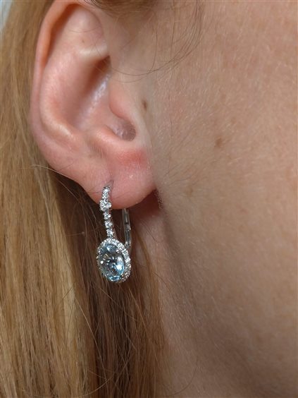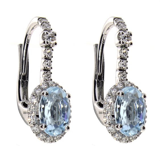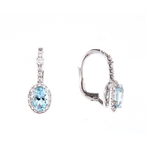 Notte di San Lorenzo: una collezione che celebra la magia di un cielo stellato, il momento per esprimere un desiderio e realizzare un sogno d'amore.Un diamante per ogni stella del cielo e diamanti più importanti per rappresentare la magica esplosione delle stelle cadenti. Orecchini in oro bianco con acquamarina ct 0,30 impreziosita da diamanti taglio brillante ct 0,28