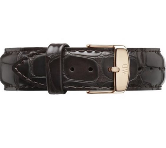 Cinturino Daniel Wellington, tipo di cinturino York in morbida pelle marrone scuro stampa coccodrillo. Il cinturino é in nylon con fibbia con logo. La larghezza del cinturino é di 20mm compatibile con la cassa di dimensione doppia. Il modello é classic. Il cinturino in pelle, dopo l’utilizzo, acquisterà un particolare aspetto vintage, diventando così ancora più originale.
