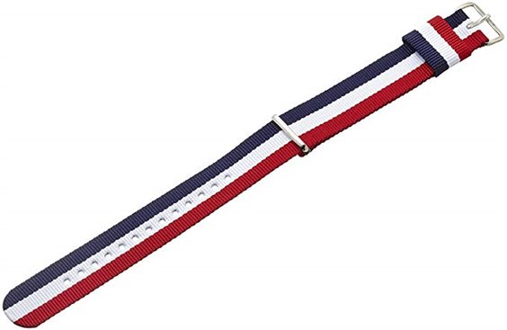 cinturino per orologio unisex daniel wellington, collezione CAMBRIDGE in nylon nato colore blu/bianco/ROSSO, fibbia in colore ACCIAIO, adattO a qualsiasi orologio dw che usa lo strap 20 mm,