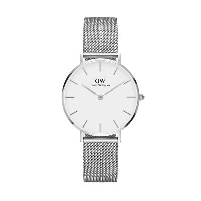 Orologio Solo Tempo Da Donna Di Daniel Wellington Della Collezione Classic Petite. Modello Sterling White, Con Cassa Tonda Della Dimensione Di 32 Mm E Dello Spessore Di 6 Mm. Questo Orologio È Di Colore Silver, Con Cinturino In Maglia Mesh, Della Larghezza Di 14 Mm. Il Quadrante È Di Colore Bianco. Orologio Con Resistenza All'Acqua Di 3 Atm E Movimento Di Tipo Japanese Quartz.