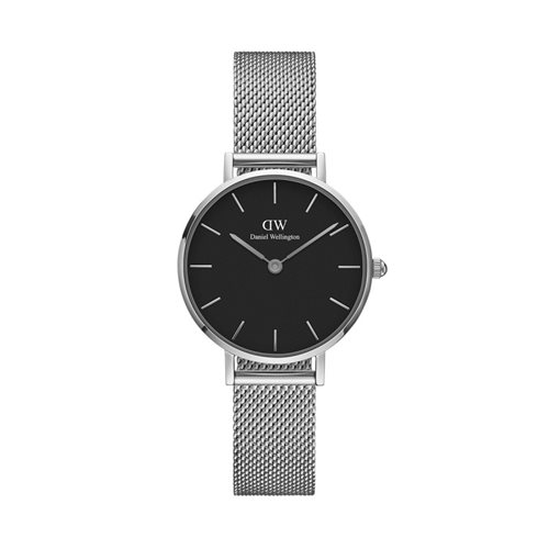 Orologio Solo Tempo Da Donna Di Daniel Wellington Della Collezione Classic Petite. Modello Con Cassa In Acciaio Del Diametro Di 28 Mm E Spessore Di 6 Mm E Quadrante Di Colore Nero Con Bordo Silver. ll Cinturino E' Intercambiabile In Maglia Mesh Silver E Della Larghezza Di 12 Mm. Orologio Caratterizzato Da Japanese Quartz Movement E Resistenza All'Acqua Di 3 Atm.