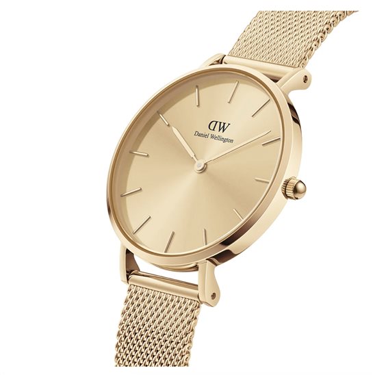 Orologio solo tempo da donna di Daniel Wellington della collezione petite. Orologio petite unitone realizzato in acciaio inossidabile con cinturino e quadrante di color oro. Dimensione cassa: 32mm. Movimento: quarzo. La resistenza all'acqua è di 3 atm. La chiusura è a deployante.