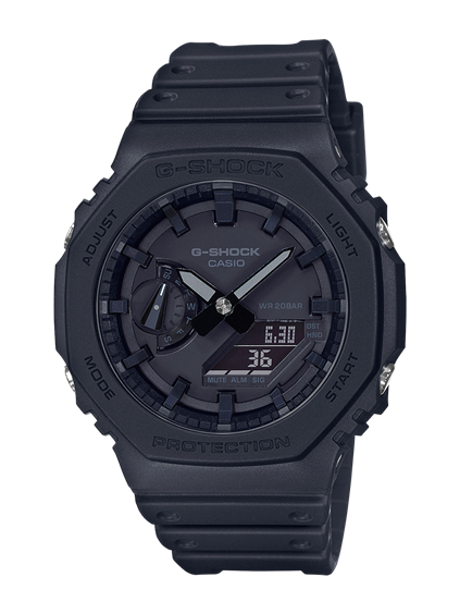 G-SHOCK, il brand di orologi indistruttibili, si evolve in un'infinita ricerca di estrema forza e resistenza. Il modello 2100 è una combinazione di digitale-analogico che eredita il concetto dei modelli DW-5000C di prima generazione, aggiornandolo ai giorni nostri con un design ottagonale. Inoltre, l’orologio raggiunge uno spessore di 11,8 mm grazie a una resina fine estremamente rigida, irrobustita dalla fibra di carbonio. Funzioni: tempo, calendario, fuso orario, timer, cronometro, allarme giornaliero, funzione di spostamento delle lancette (le lancette si spostano per non bloccare la visualizzazione del contenuto del display digitale), con luce led per illuminare il quadrante.