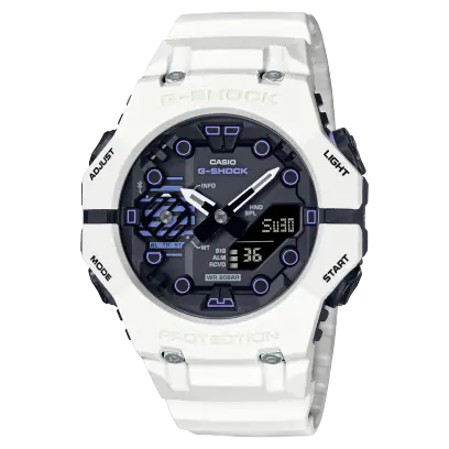 Fatti trasportare in mondi inesplorati, grazie a un design audace in grado di trasmettere sensazioni futuristiche. Ispirato alle pagine dei classici della fantascienza, il design bianco semplice e pulito è accentuato da tocchi blu e viola. La lunetta è stampata con una vernice fluorescente che fa risaltare il logo G-SHOCK al buio. Tutti gli orologi possono essere associati allo smartphone tramite Bluetooth.