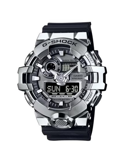Vi presentiamo i nuovi G-SHOCK GM-700, analogico-digitali con l'iconica cassa bold. Con l'amatissima lunetta in acciaio dei modelli GM-5600, GM-6900 e GM-110, il GM-700 riprende il design del GA-700, ma lo porta ad un nuovo livello grazie al feeling metal che conferisce un tocco più glamour. Disponibile nelle versioni più classiche con lunetta silver o gold. Il pulsante frontale permette di accedere facilmente alla luce LED per illuminare il quadrante e ottenere un'elevata visibilità anche negli ambienti più bui.