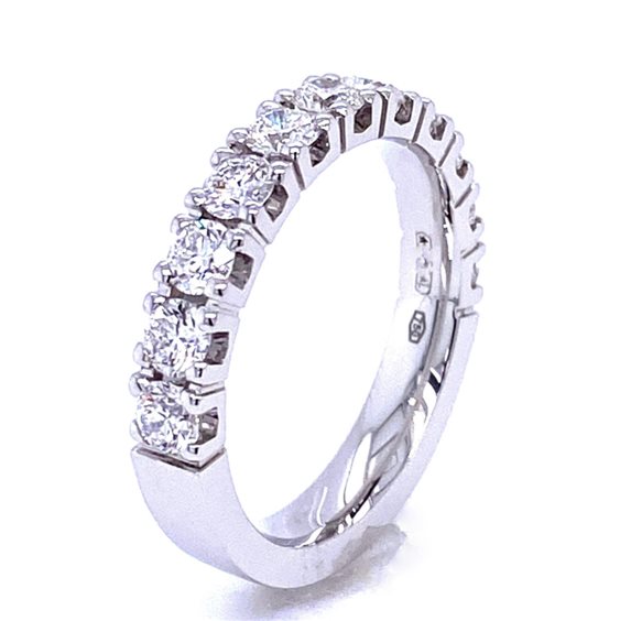 Colore diamante: D/E. Anello in oro bianco da 9 diamanti.