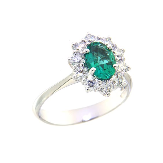 Anello in oro bianco con SMERALDO NATURALE taglio OVALE e dimanti taglio blrillante colore D/E