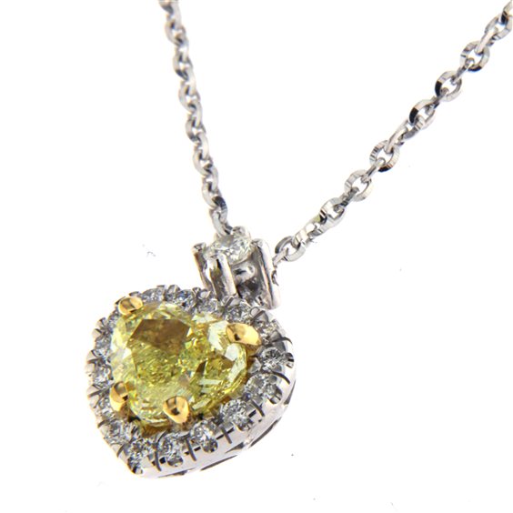 Girocollo in oro bianco con DIAMANTE NATURALE YELLOW FANCY taglio CUORE