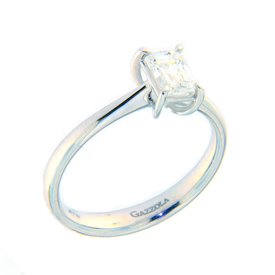 Anello solitario in oro bianco con Diamante taglio smeraldo certificato internazionale GIA