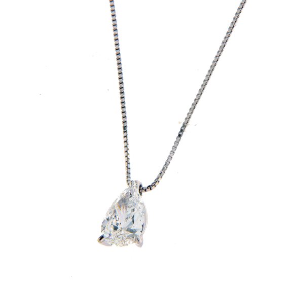 Girocollo solitario in oro bianco con Diamante taglio goccia certificato internazionale IGI