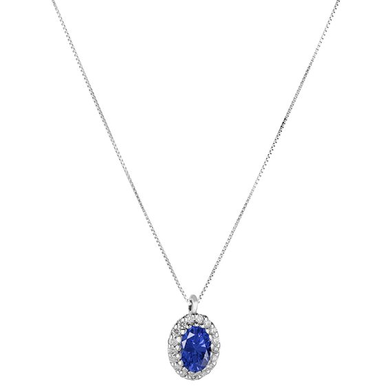 Girocollo in oro bianco 18 KT con 1 zaffiro naturale di taglio ovale misura 6X4 e 17 diamanti bianchi